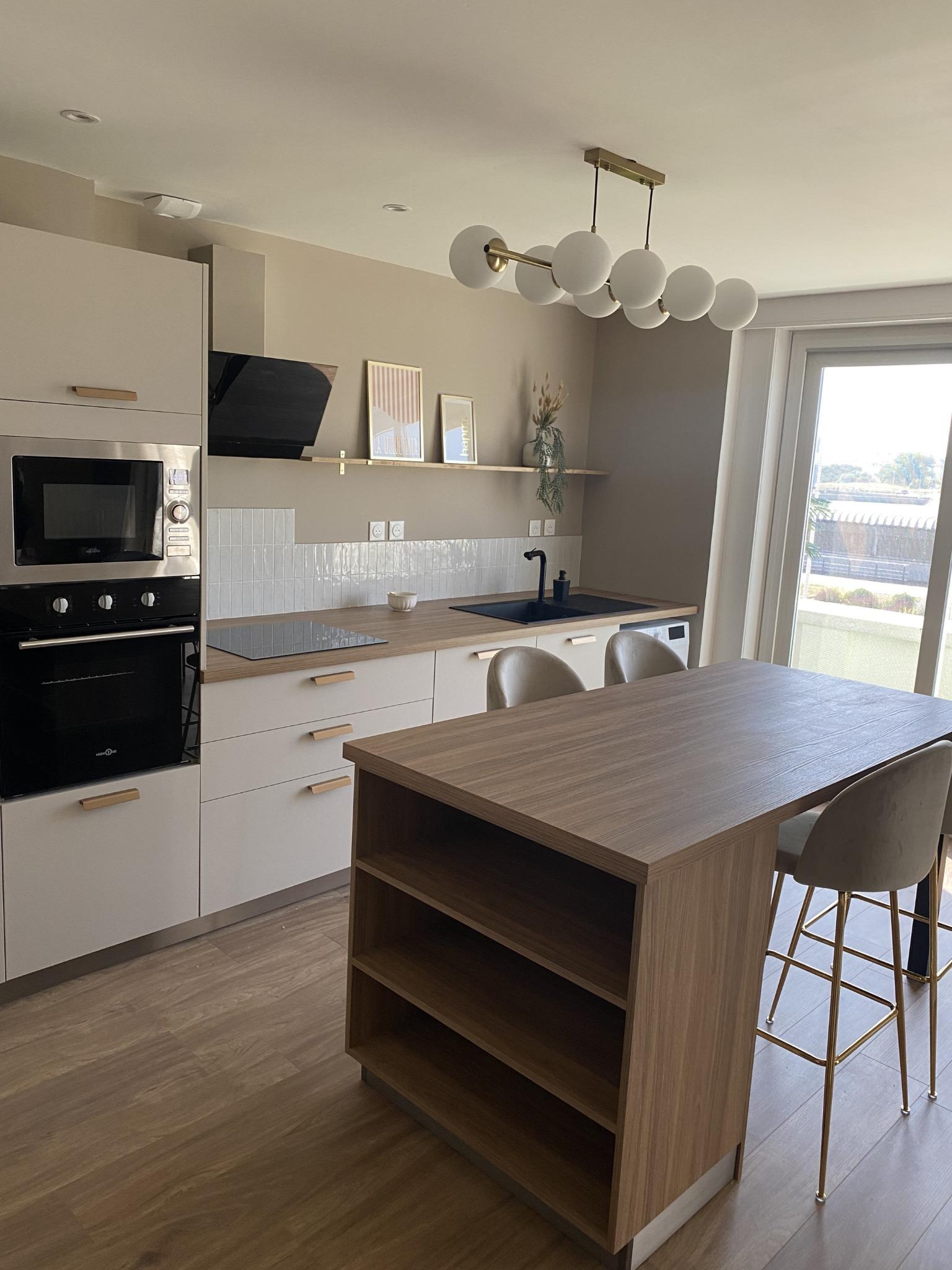Cuisine design avec électroménager complet pour préparer vos repas comme à la maison.