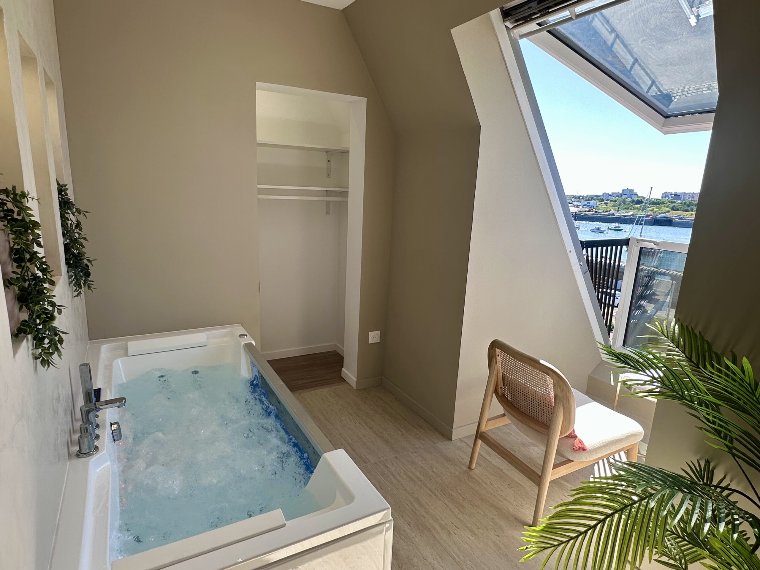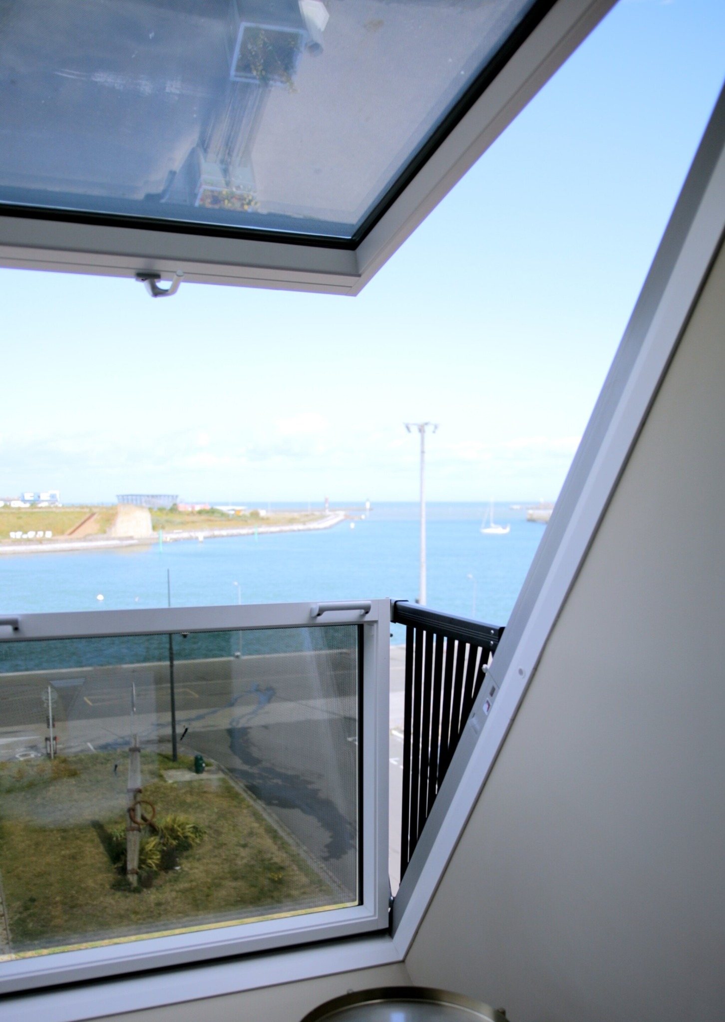 Pouvant accueillir 2 personnes, cet espace raffiné au 3ème étage offre une vue panoramique magnifique sur la Mer de Calais, l’entrée des bateaux de plaisance, l’étendue de la Mer du Nord et le déambule du Dragon que vous pourrez admirer depuis sa large fenêtre-balcon